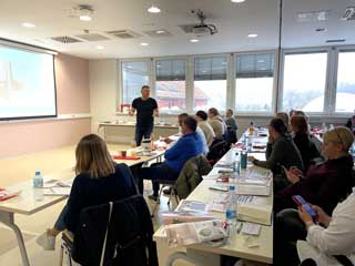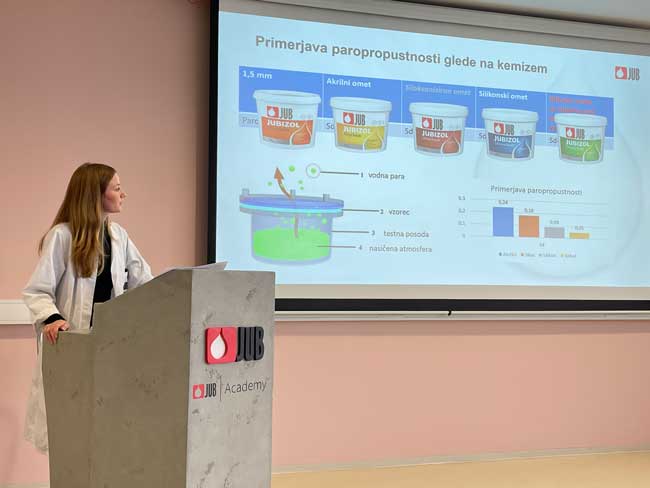 Vodja JUB Akademije dr. Iztok Kamenski je na srečanju udeležencem uvodoma predstavil pomen testiranja in certificiranja fasadnih sistemov JUBIZOL, v nadaljevanju pa se je podrobneje posvetil izolacijskim oblogam in lastnostim različnih vrst dekorativnih ometov, ki ščitijo fasadno površino pred atmosferskimi obremenitvami.