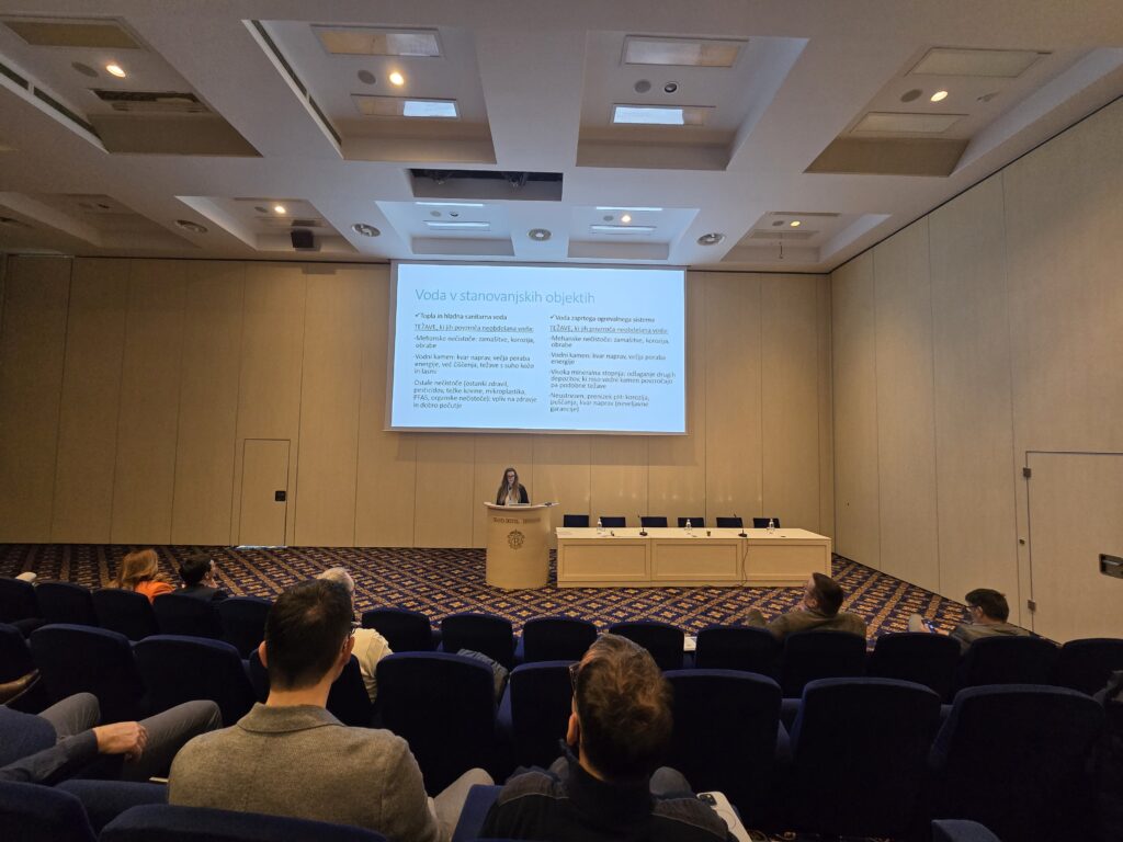 Predavanje je temeljilo na zahtevah standarda VDI 2035, ki določa parametre za polnjenje in vzdrževanje zaprtih ogrevalnih sistemov. Tadeja Volaušek je jasno predstavila posledice neustrezne kakovosti vode – od nalaganja vodnega kamna, korozije in nastanka magnetita do zmanjšane učinkovitosti sistema ter potencialne izgube garancije proizvajalca.