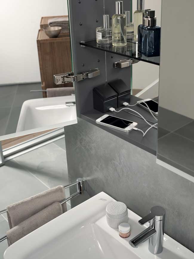 Za svoja ogledala lahko torej izberete celo vrsto dodatnih funkcij: integrirane svetlobne elemente, vgrajene vtičnice za sušilec za lase ali električni brivnik, priključek za USB polnilec, ki omogoča napajanje prenosnih elektronskih naprav ali povečevalno ogledalo, ki se lahko namesti kamorkoli. Vsekakor je na voljo pestra izbira možnosti.