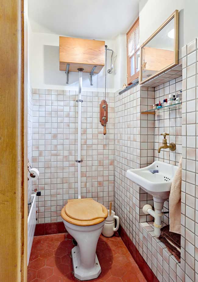 Vodovodni inštalater Paul Bosshard se je dobro zavedal zgodovinske vrednosti originalnega izdelka in je takoj sprejel nalogo, da popravi star, vendar še delujoč podometni splakovalnik. Odlično se ujema s preostalo kopalnico za goste.