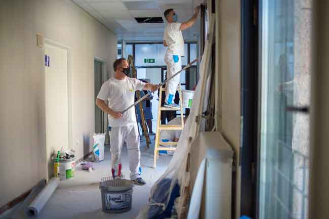 V ljubljanski porodnišnici so z gradbenimi deli začeli že v januarju in do sredine aprila prenovili tla, strope in inštalacije. Po obdelavi sten z izravnalnimi masami je v tednu pred prvomajskimi prazniki sledilo še pleskanje zidnih in stropnih površin z barvami iz družine JUPOL, zatem pa so v prostor namestili še novo pohištvo in druge dodatke. V UKC Ljubljana tako sledijo cilju, da osrednja slovenska bolnišnica ob strokovni obravnavi zagotovi tudi čim bolj prijazno doživetje tako lepega dogodka v življenju, kot je rojstvo otroka. Z dodatnim prostorom za spremljevalce, ki so prisotni pri porodu, želijo v UKC Ljubljana skupaj s članicami Zveze Rotary klubov Slovenije doprinesti k posebnim področjem zdravja, kjer je še posebej izpostavljeno zdravje bodočih mater in otrok.