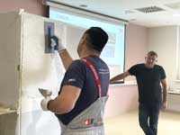 Prikaz pravilnega lepljenja izolacijskih oblog EPS in kamene volne ter nanašanje ometa